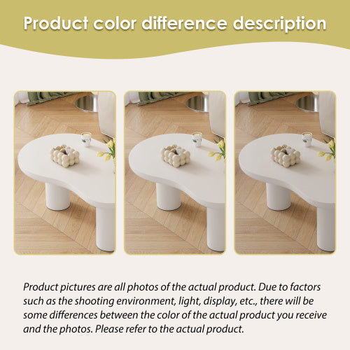 Product Name:Irregular White Painted Coffee Table, Cloud Shaped Coffee Table Tea Table End Table, Modern Coffee Table with 3 Legs, for Living Room Furniture, 107x66x40.5 cm