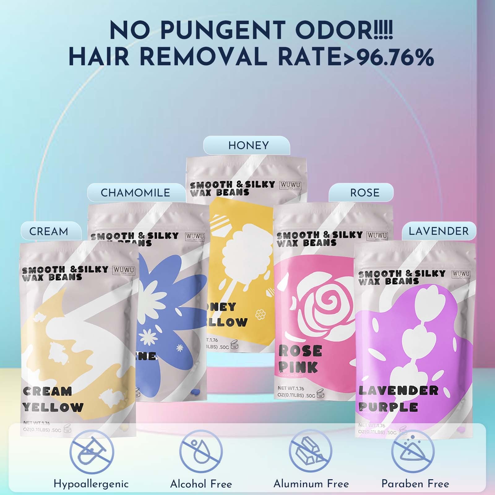WUWUVISTA waxing kit ensures you're all set for effortless waxing at home or on the go. It's non-irritating, non-odorous, gentle on the skin, yet effective with an amazing hair removal rate.